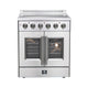 Introducing the Forno Leonardo Espresso 30 Inch 5.0 cu. Ft. Stainless-Steel Electric Range, a true kitchen game-changer. This stunning range combines style and top-notch performance with its stainless steel trim around the ceramic glass, ensuring even heat distribution across its 4 radiant elements. The powerful 5,500-watt convection oven elevates your cooking experience, providing faster and more even cooking results. The hidden bake element simplifies maintenance by preventing spills and odors, making cleanup effortless. Elevate your kitchen with this timeless, user-friendly range that marries durability with sophistication. Cook with confidence and embrace efficiency and style with every use.