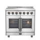 The Forno Massimo 30 Inch Freestanding Electric Range combines professional style and quality in a durable stainless-steel design. The black ceramic glass cooktop features 5 radiant elements with a total 9,500 watts output, including a 100-watt Warmer Zone. The stainless steel surface ensures lasting durability. The 4.32 cu. ft. oven has a combined 4,800 watts broil and bake output, and a 1,500 watt true convection fan. Includes Air Fryer Basket, Drip Pan, 2 telescopic oven racks, and a 4-prong power cord. Housed in high-grade stainless steel with zinc-coated metal knobs for lasting elegance. Enjoy style and durability at an affordable cost with Forno.