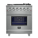 The Forno Massimo 36 Inch Gas Range harmonizes professional style and 304-grade stainless steel durability. Its 6 sealed burners, totaling 83,000 BTU, include a precision 20,000 BTU dual-ring burner that can simmer at 1,000 BTU. Continuous cast iron grates ensure stability on the enamel surface. The 5.36 cu.ft. convection oven, with a blue enamel interior and 3-layer glass window, reaches 30,000 BTU for versatile cooking. It features 2 telescopic racks, an air fryer kit, a wok support, a reversible griddle, an LP conversion kit, and durable zinc-coated metal knobs. Elevate your kitchen with performance, convenience, and enduring elegance.