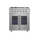 The Forno Spezia 48 Inch gas rangetop features a versatile configuration with 8 sealed dual brass burners totaling 160,000 BTUs, ready for any culinary challenge. Continuous cast iron grates simplify pan movement, while illuminated zinc control knobs offer precise gas cooking control. Includes auto-ignition, griddle, wok-ring, and LP conversion kit. Crafted from heavy-duty 304 stainless steel for easy cleaning, complementing any kitchen design alongside other Forno appliances.