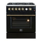 Our 48" Galiano Dual Fuel French Door Range blends timeless design and high performance. Featuring a sleek black finish and antique brass knobs, this range adds sophistication to any kitchen at an affordable price. The cooktop boasts eight sealed burners with a total output of 107,000 BTU, including a 20,000 BTU dual-ring burner ideal for boiling, searing, or simmering delicate sauces. The heavy-duty cast iron grates provide a stable surface and allow you to slide cookware effortlessly across the cooktop. Its spacious 6.58 cu.ft. true convection oven delivers even heat distribution, powered by 9,700 watts, for perfectly baked and roasted dishes. Easy-to-clean black enamel interiors, French door convenience, and included electroplated racks make this range as practical as it is beautiful. Complete with an LP conversion kit and NEMA 14-50 power cord, the Galiano Range is built for both style and efficiency.