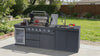 - PRODUCT DIMENSIONS - Height (hood closed) - 47” / Height (hood open) - 58” / Countertop Height - 36” / Depth - 23” / Width - 85” / Grill unit - 43”x 23”x 46” / Right Side Unit - 19” x 23” x 36” / Rotisserie kit length - 32”