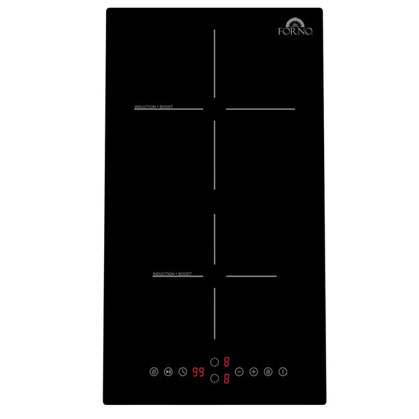 Maximize your cooking potential with the Parco 12" Induction Cooktop, ideal for small kitchens, apartments, and extra cooking surfaces. This space-saving cooktop features two high-performance burners, delivering 1500 and 2000 watts with 9 power levels and a Boost function for quick heating—reaching up to 2600 watts on the rear zone for rapid boiling. Enjoy precision cooking with a 99-minute timer, while the Stop & Go function lets you pause and resume seamlessly. User-friendly touch controls provide effortless adjustments, and the control lock ensures easy cleaning by preventing accidental changes. The smooth ceramic glass surface ensures even heat distribution, while its sleek, frameless design integrates seamlessly into any modern kitchen. Safety features include automatic shut-off and an Intelligent Pan Detection System, ensuring heating only when compatible cookware is detected.
